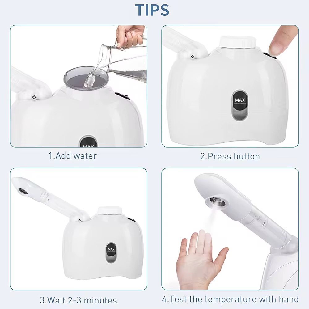 بخار ساخن حقيقي يساعد على فتح المسام وترطيب البشرة بعمق.