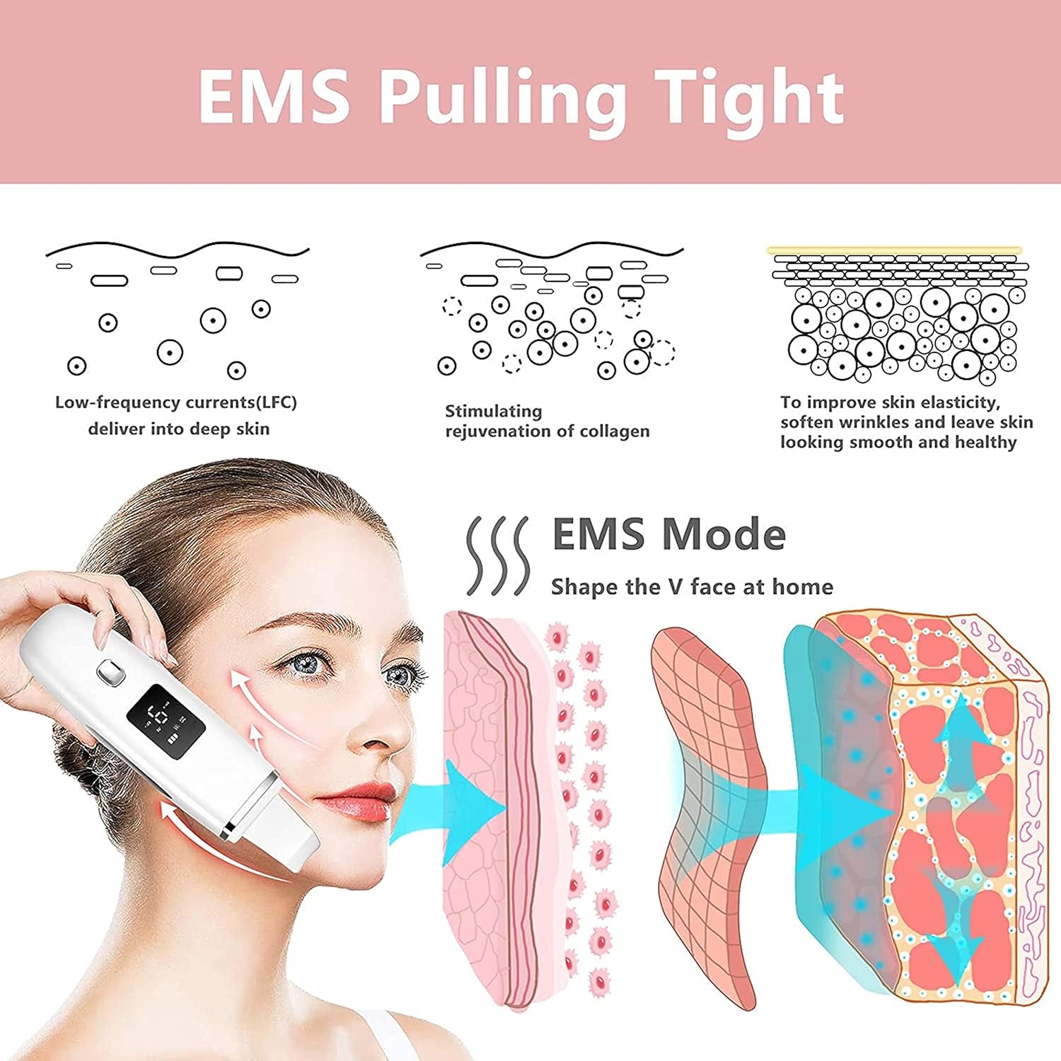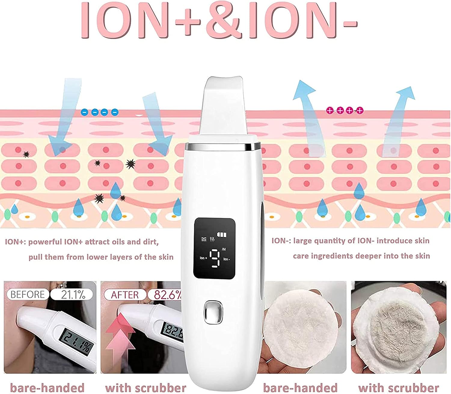 بيستخدم ترددات عالية لإزالة الشوائب، الرؤوس السوداء، والخلايا الميتة من سطح الجلد بلطف وفعالية.